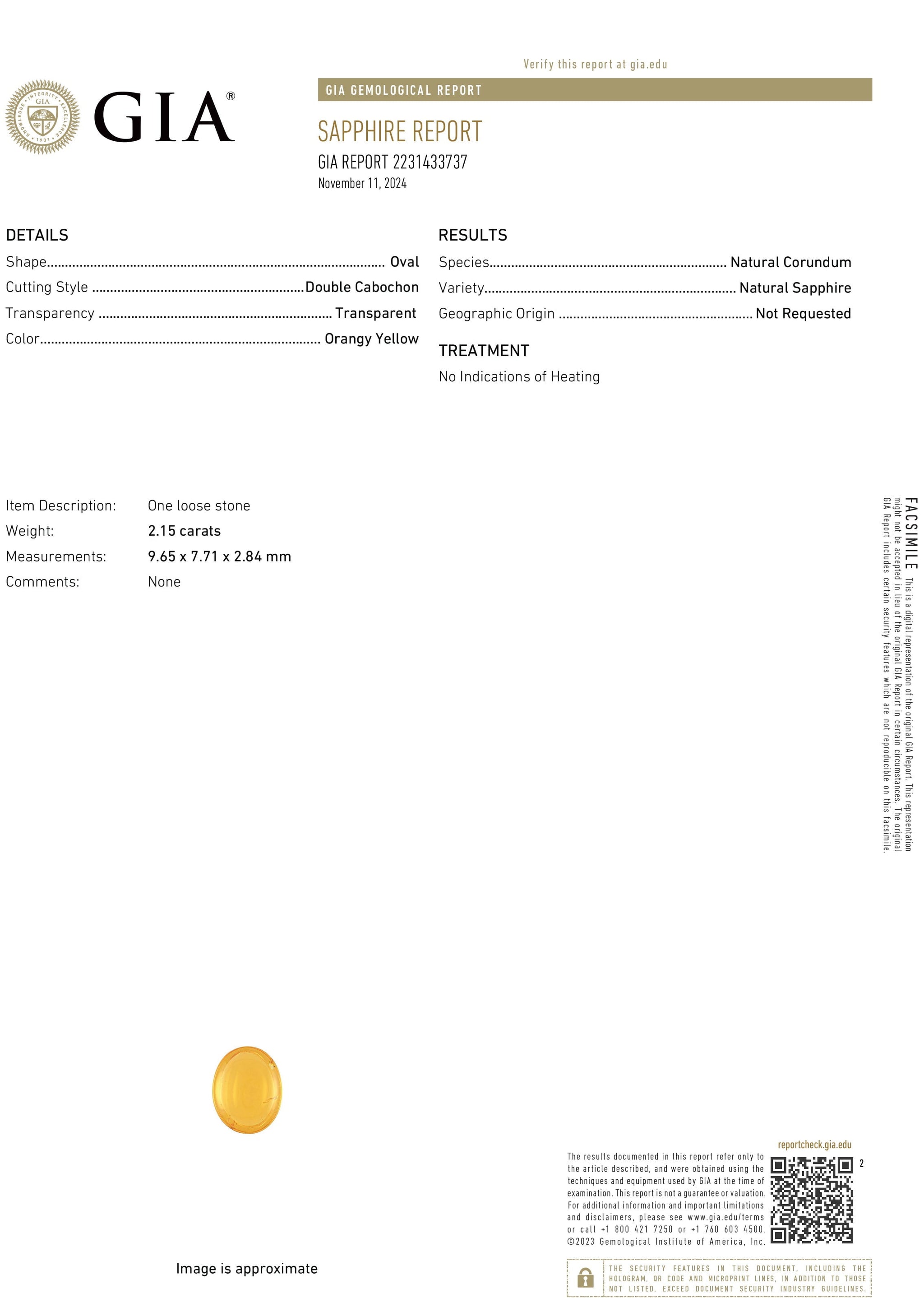 Center Gemstone Information: 1 GIA Certified Oval Cabochon Cut 4-Prong Set Natural Sapphire