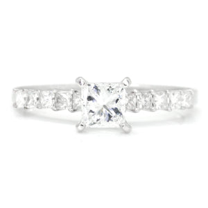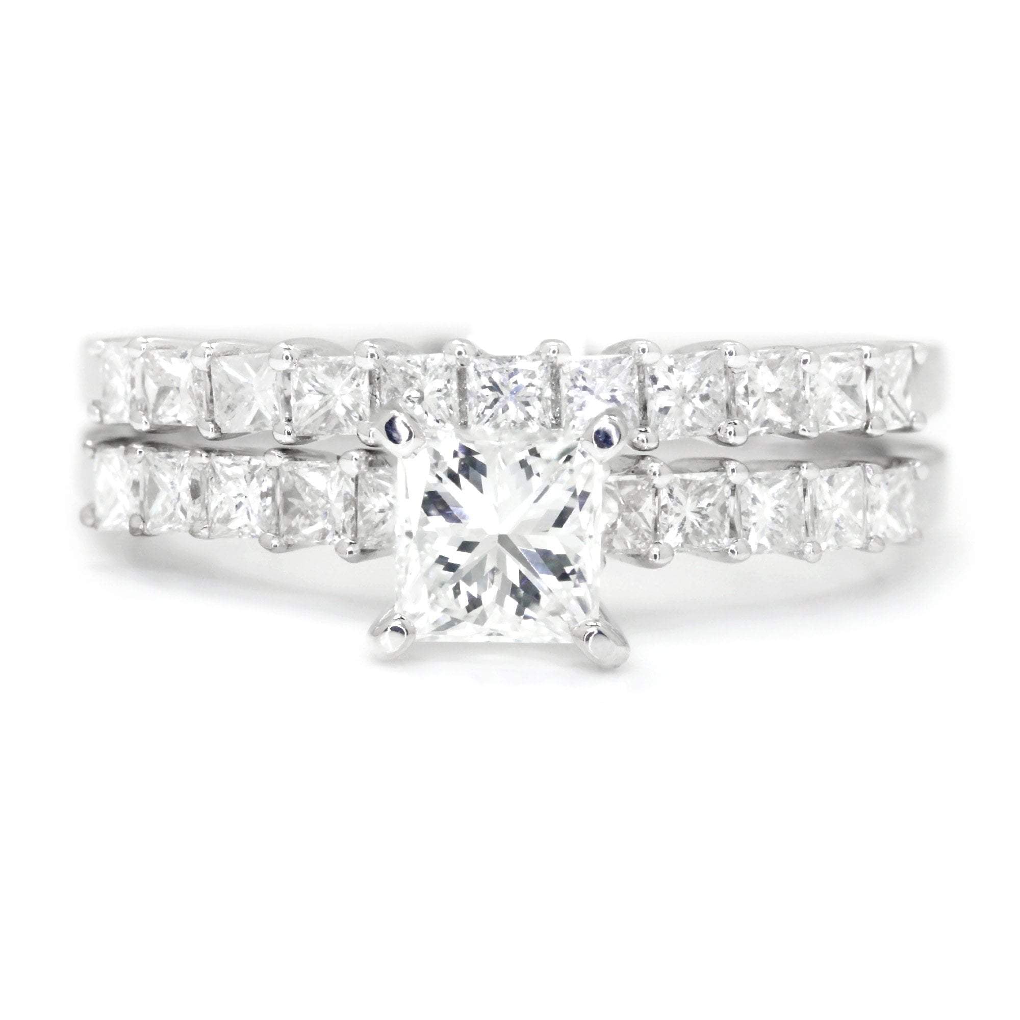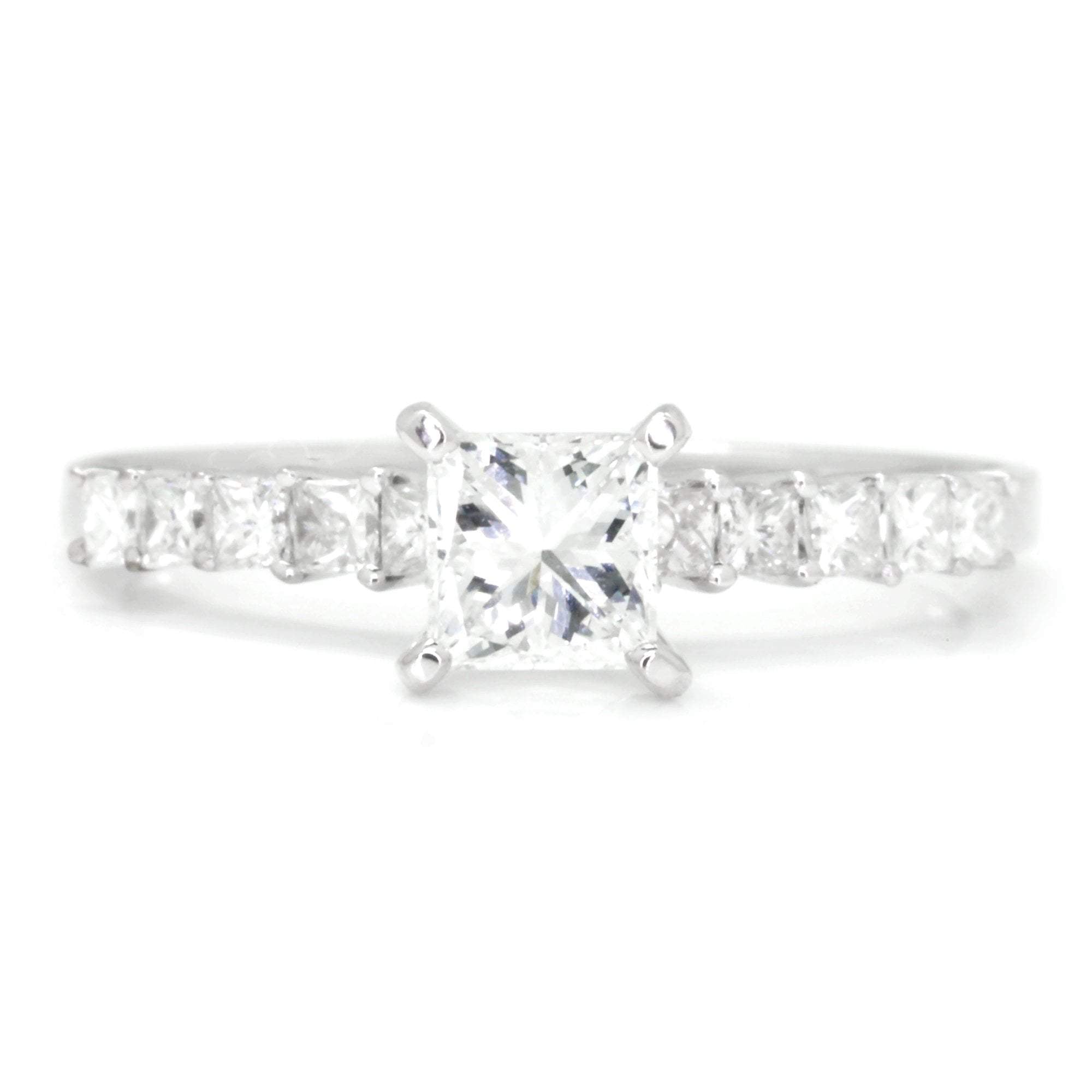 Center Diamond Info: 1 Princess Cut 4-Prong Set Natural Diamond
